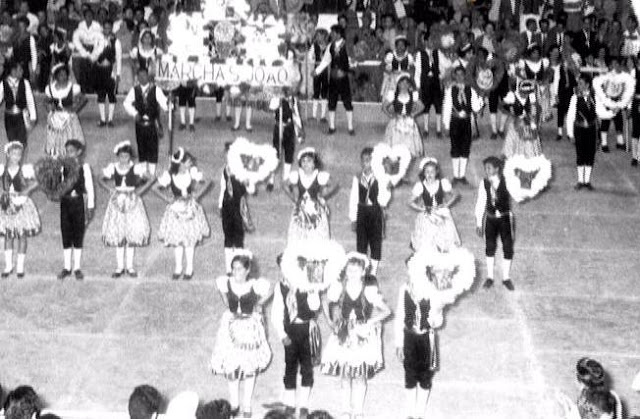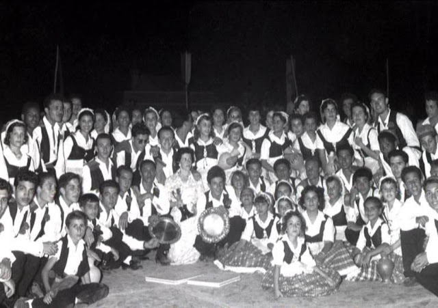 Outra foto da Marcha do Ginásio Clube da Torre do Tombo, o primeiro clube que Moçâmedes conheceu, e que desenvolveu variada actividade desportiva, masculina e feminina e incrementou as festas tradicionais portuguesas na cidade. Podemos vêr, da esq. para a dt, em cima: Céu Costa Santos, Lurdes Sena, Manuela Costa Santos, Ricardina Lisboa, Maria José, Eduarda Bauleth, Rita Seixal, M. Nídia Almeida, Celísia Calão, Graça Nunes de Sousa, José Carlos Esteves Isidoro (Zequinha), Claudete Bagarrão,Fernanda Castro, Raquel Nunes, Ivone Serra, Lili Gois Teles, Georgete, para além dos músicos. Em baixo: Eurico, Armando Sena, Camarinha, Zeca Ilha, José Fernando Soares, Bernardino, Joaquim Gregório, Cristão (Quitolas), Arménio Jardim, Carlos Alberto Cristão (Cabé),Fernando Vilaça, Licas, Frederico, Bajouca, e Carlos Manuel G. Lisboa (Lolita). Foto gentilmente cedida por Ricardina Lisboa