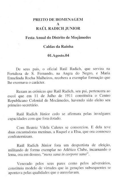 Depois, era a vez do Dominguinhos ceguinho, arguto e inteligente, que caminhava sempre com um assobio nos lábios, compondo cazicutas para o carnaval com poemas de escárnio e maldizer de sua autoria. Como um jogador de xadrez, especialista em simultâneas às cegas, o Dominguinhos conhecia cada peça da cidade, cada rua, cada casa, toda a gente de Moçâmedes do antigamente, desde o gourmet da Maria do Quico, já para lá do Bairro da Maria da Glória, até à Baixa do Tapa-Tapa, por trás da loja do Manuel Monteiro, na Torre do Tombo.