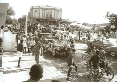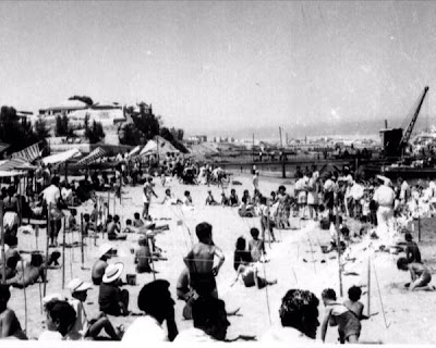 Esta foto mostra-nos um "concurso canino" realizado na pequena pista arredondada do Parque Infantil, por ocasião das "Festas do Mar" em 1970.
