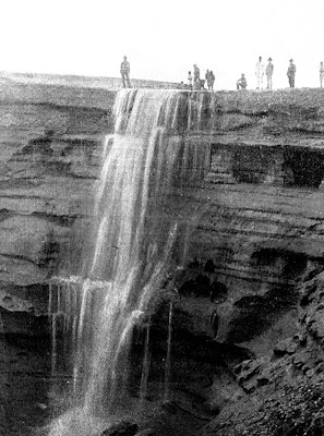 Habitantes de Moçâmedes apreciando a queda em cascata das águas do Bero para o interior das  chamadas «furnas» de Santo António
