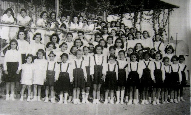 Na famosa casa "Santa Filomena" onde a veneranda senhora, a professora primária D Aline, ensinava o catecismo, eram muitas as jovens senhoras e senhoritas catequistas, como se pode ver por esta foto e pelas duas que seguem onde se encontram na metade superior da foto, junto das educandas.