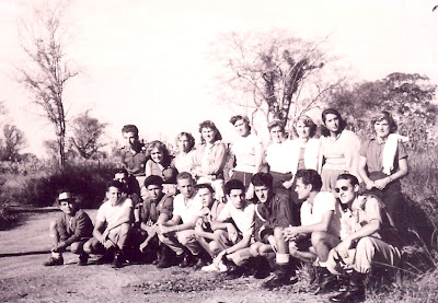 Elementos da Escola de pilotagem de Moçâmedes. Entre outros reconheço: Em cima e da esq. para a dt: Jaime Lúcio Ferreira dos Santos, ?, José Luís Pinto, Domingos Alves Figueiras, Ferreira da Silva (instrutor), ?, Guilherme de Almeida, ?, Tiago Costa e Bento Padrão. Embaixo: ?,?, Armando Guedes Duarte (Mandinho), Alfredo Esteves, ?;?;?;?.