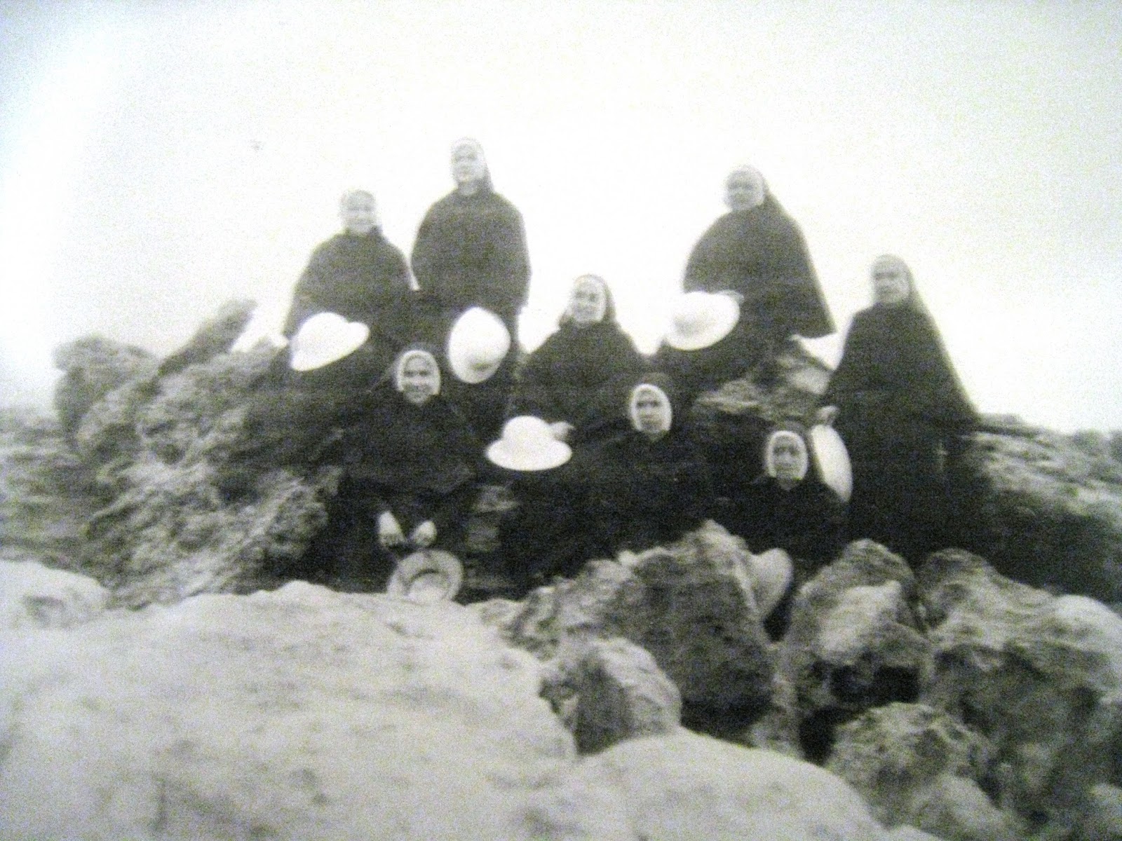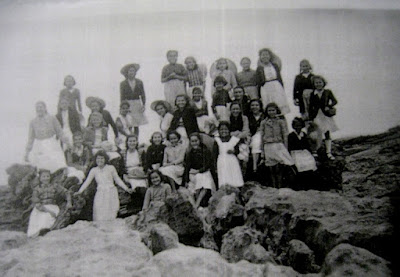 Foto de 1954, onde podemos ver, da esq. para a dt. , em cima: Luisa (gémea), ?, Lurdes Teixeira, Júlia Minas? e Gina Fernandes. Embaixo:  Edith Pinheiro, Graciete (Gémea), Lurdes e Clarabela Trindade.