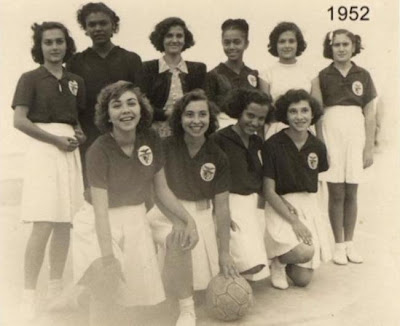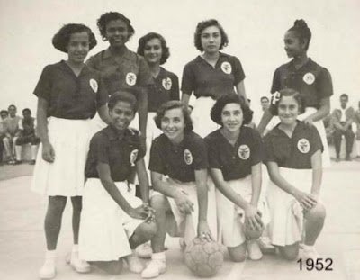 Foto tirada em 1955. Nesta composição estão representadas as seguintes atletas, de cima para baixo e da esq. para a dt: Minelvina Cruz, Gina Trindade, Lurdes Teixeira, ? e Marlene Oliveira. Embaixo: Gina Fernandes, Clarabela Trindade, Piedade e Esmeralda.