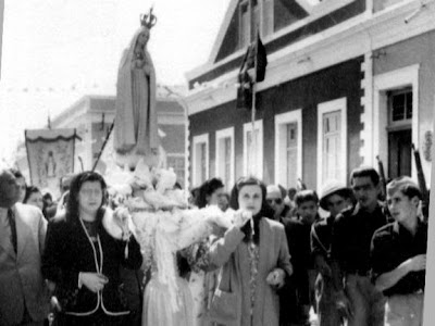 Formou-se então uma extensa procissão que, cumprindo o programa pré estabelecido pela comissão organizadora  --da qual faziam parte entidades camarárias,  governo civil,  padres da Igreja, e elementos masculinos e femininos da Acção Católica --, percorreu  serpenteando as ruas da cidade, rumo ao antigo campo de futebol, situado ao  fundo da Avenida da República, onde foi rezada uma missa campal ministrada pelo Padre Guilhermino Galhano.